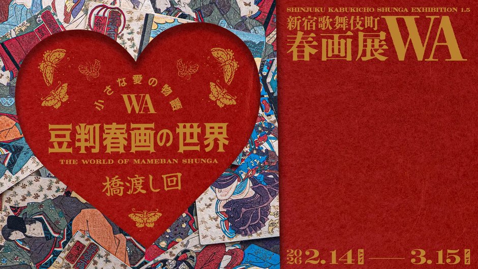 Trước thềm “『北斎・英泉 艶くらべ ー歌舞伎町花盛りー』 Triển lãm Shunga WA tại Shinjuku Kabukichō, lần thứ 2”, từ Thứ Bảy ngày 14/2/2026 đến Chủ Nhật ngày 15/3/2026, chúng tôi sẽ tổ chức “『Những câu chuyện tình nhỏ — Thế giới shunga khổ mame‑ban —』 Triển lãm Shunga WA tại Shinjuku Kabukichō, kỳ cầu nối”.